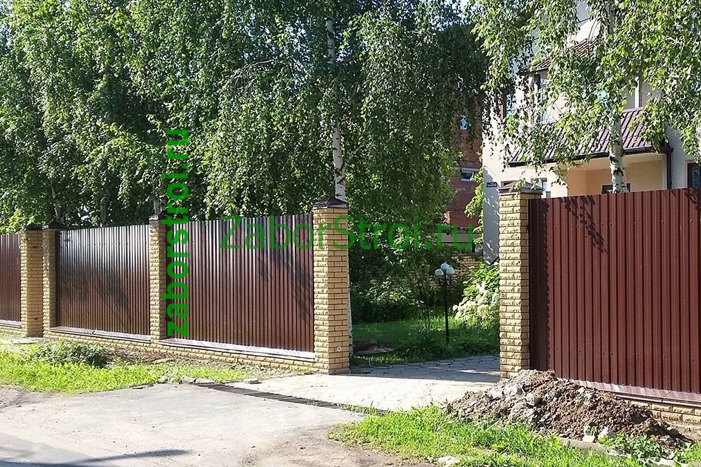 Заборы из профнастила с кирпичными столбами 100 метров